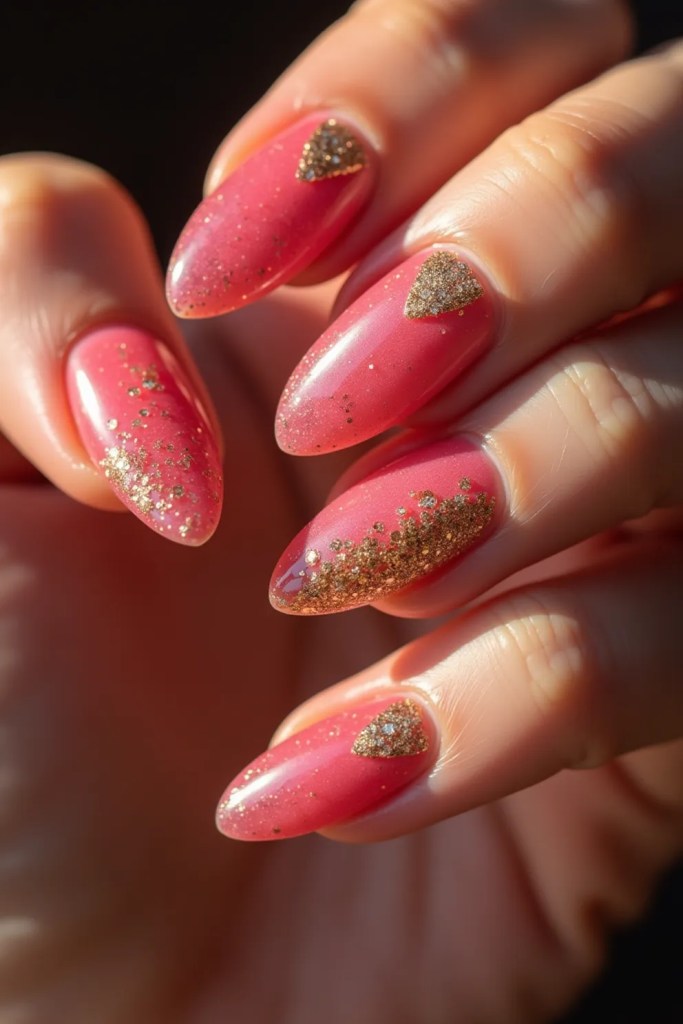Incorporate subtle gold or rose gold glitter accents into guava pink base colors. Apply glitter sparingly for daytime elegance or layer generously for evening glamour that captures light dramatically.
